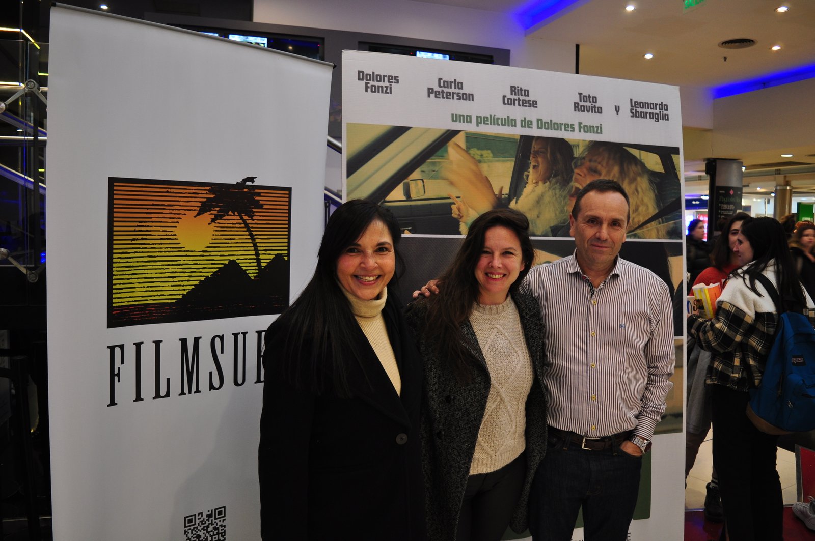 Eduardo Speranza, Director Comercial junto con el equipo comercial de FilmSuez, Dolores Fonzi y Santiago Mitre.